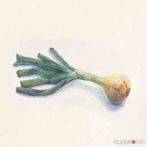 いちごは小さいので、しっかり観察しながら描くと良いのですが、難しいポイントとして「真っ直ぐ(垂直)な状態で自立しない」ということでしょう。固まりとして見ると「円錐形」を横に倒している状態です。真っすぐの状態ではないものを描くのは奥行き感や影の調子を見極めるのが難しく、形の不具合が出やすいので小さいところを見すぎないように全体の陰影を捉えましょう。