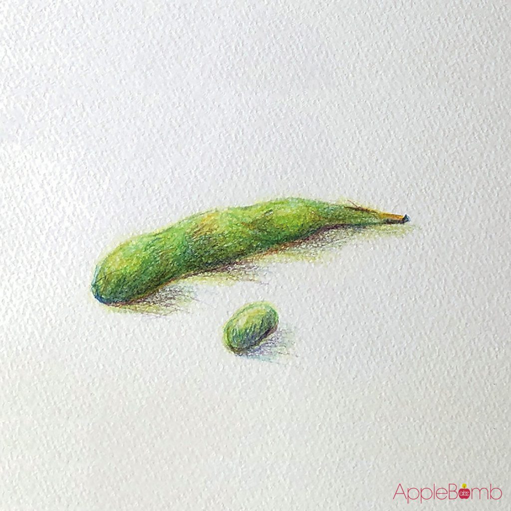 枝豆(色鉛筆画) 今回は、色鉛筆で枝豆を描いてみました。色鉛筆は水彩用を使用しています。 最初に、どのように描いたらよくわからない場合、写真を利用するのが良いかもしれません。 本来は、実際の対象物を見ながら描くのが大切ではありますが、輪郭の...