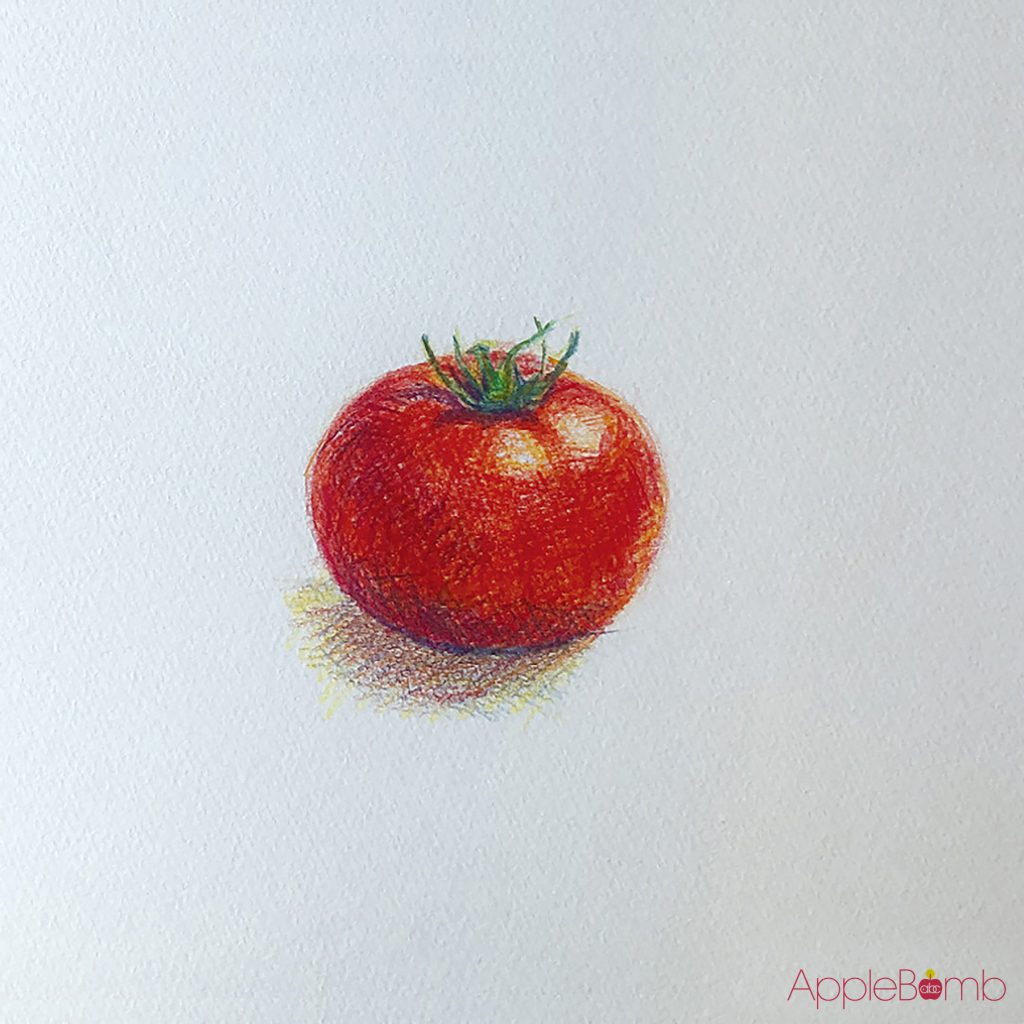 トマト(色鉛筆画) 久しぶりに、色鉛筆でトマトを描いてみました。色鉛筆は水彩用を使用しました。もし水筆を使わないのでしたら油彩用で描くことをお薦めします。水彩用は鉛筆が硬いので色が重なった部分の混色を作りづらいです。 あと、油彩用に比べて...